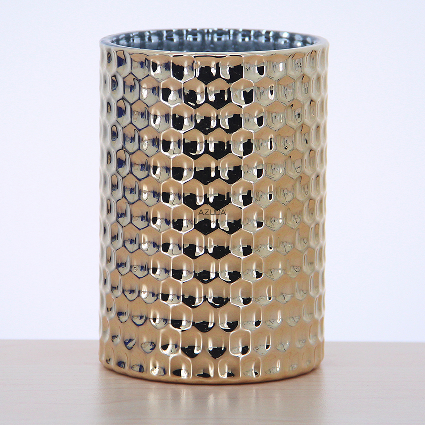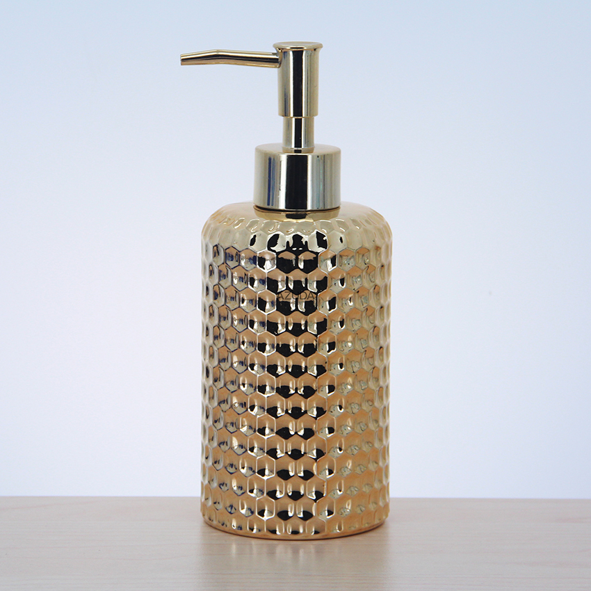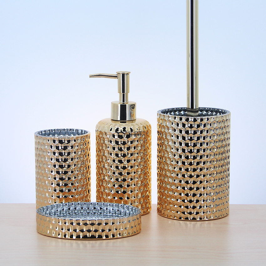 GLASS BATHROOM ACCESSORIES SET HONEYCOMB DESIGN GOLD PLATED