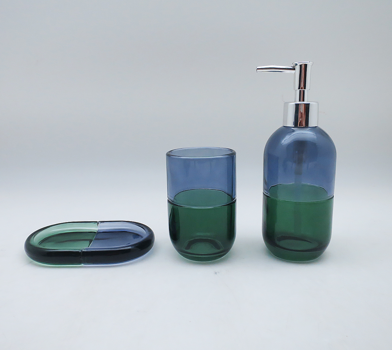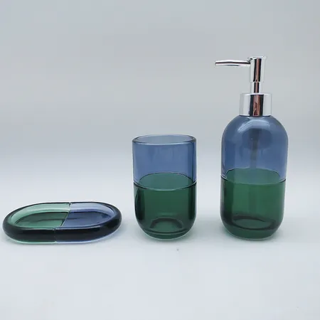 Glass Bathroom Accessories Set W/Two-Tone Effect Capsule Design