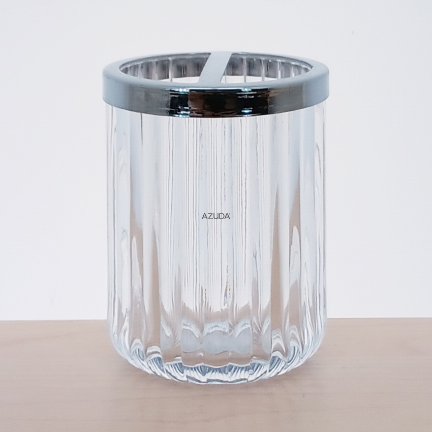 GLASS BATHROOM SET RIBBED DESIGN IN CLEAR