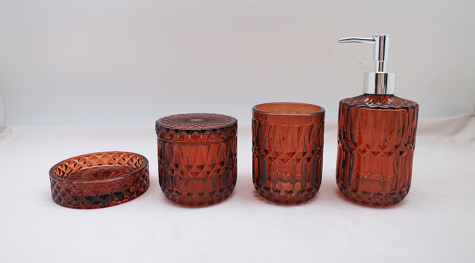 GLASS BATHROOM SET GEOMETRY DESIGN IN AMBER FINISH
