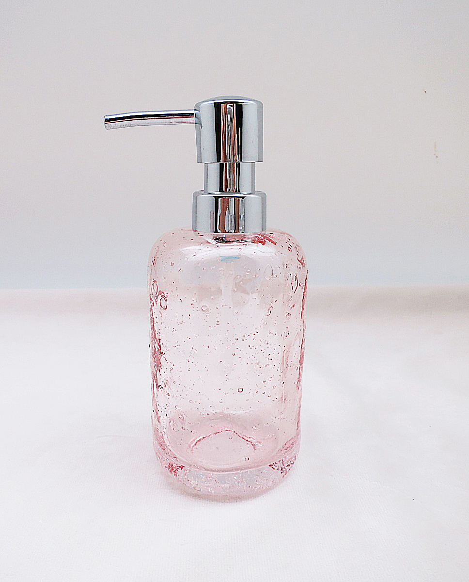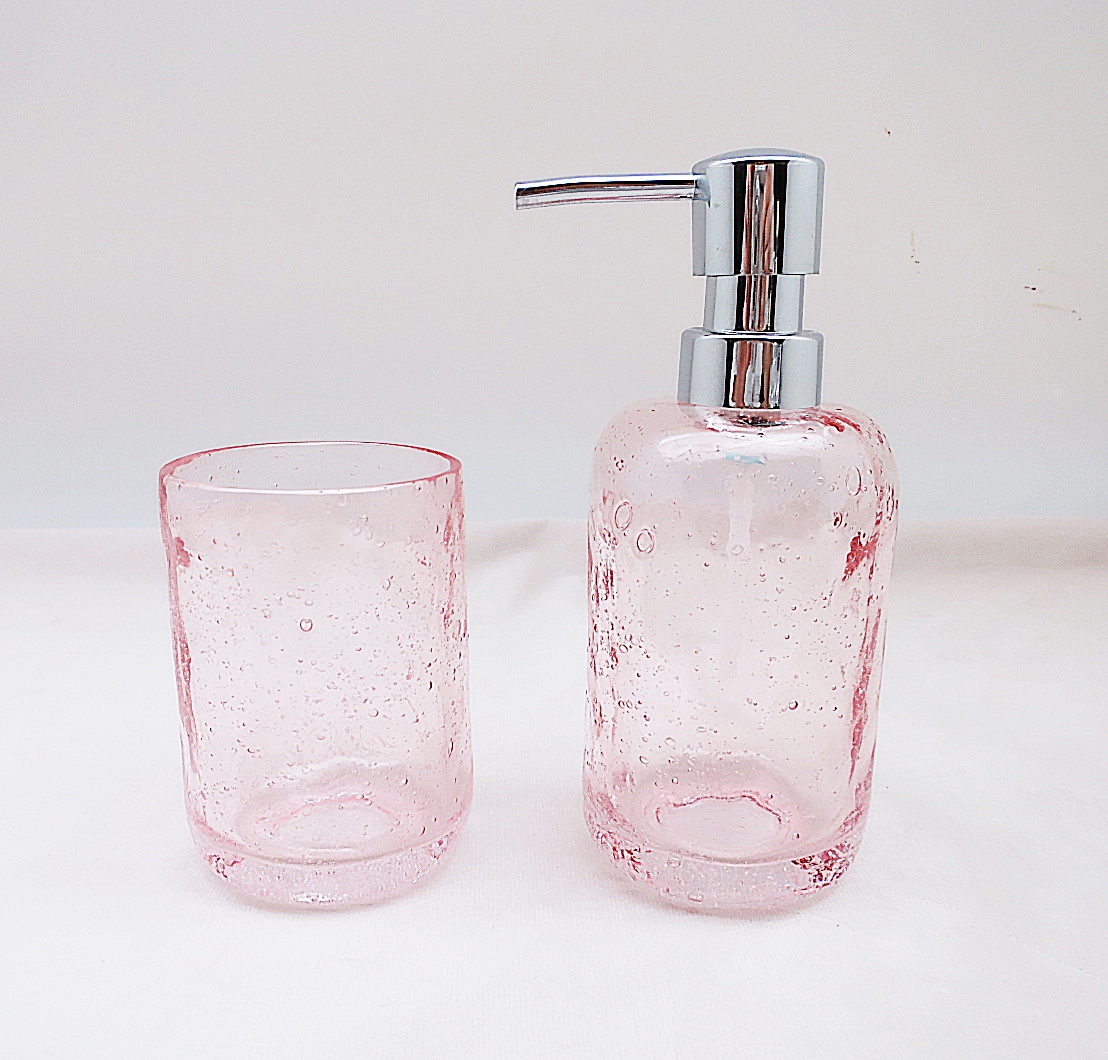 GLASS BATHROOM SET BUBBLE DESIGN IN PINK
