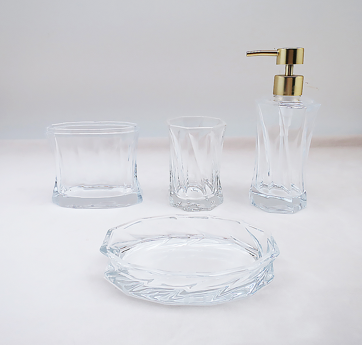 GLASS BATHROOM SET IN CLEAR