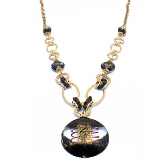This stylish necklace features a semi-transparent glass bead with a golden-toned cable chain. The necklace is handcrafted according to the antique tradition of the Italian Vaccari family since 19th century. The necklace matches flawlessly with any elegant evening dress.