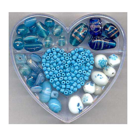 These glass beads come in 5 different sizes. The mixed colors and designs of the beads make a great match together. A heart-shaped case is provided to keep the beads organized.
