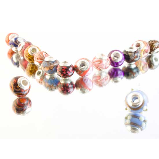 These round glass beads are available in various colors and designs. They are scrupulously handcrafted in Italian style. These gorgeous beads will add charm and style to any bracelet and necklace.