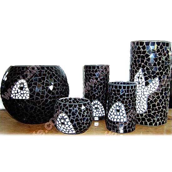 This is a 5-piece craft set made of glass chips for a gleaming touch. The black and white toned design exudes a stylish contrast. This distinctive glass chip craft set shows your noble taste easily.