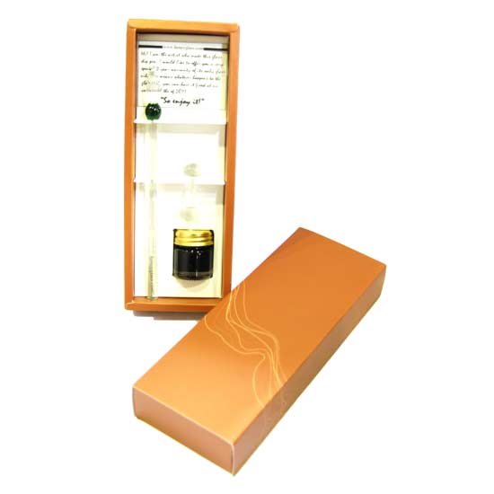 This elegant glass pen set includes a traditional fountain pen, a glass ink bottle and a glass pen rest and is completed with a deluxe gift box for an impressive touch. Get a sensual writing experience with this charming glass pen set.