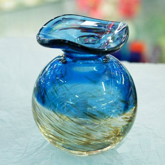 This is a perfume bottle with a fresh and unique design. It is made of hand-blown glass with excellent workmanship. The two-toned appearance accents this design for enhanced style.