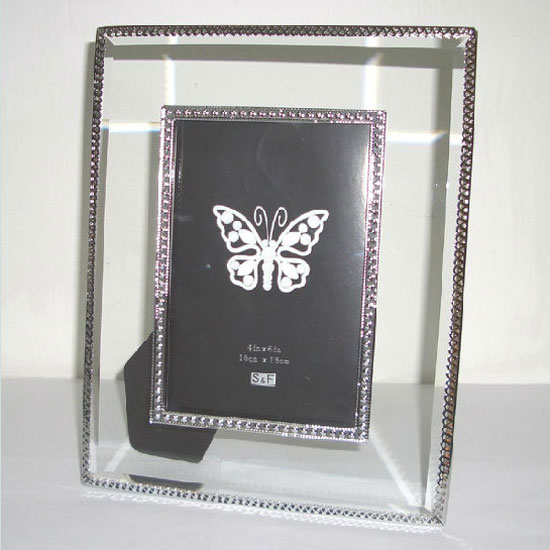 This glass photo frame is embellished with shimmery stones for a delicate touch. The photo frame comes with wire edges for added protection. This photo frame is an ideal house-warming gift for friends.