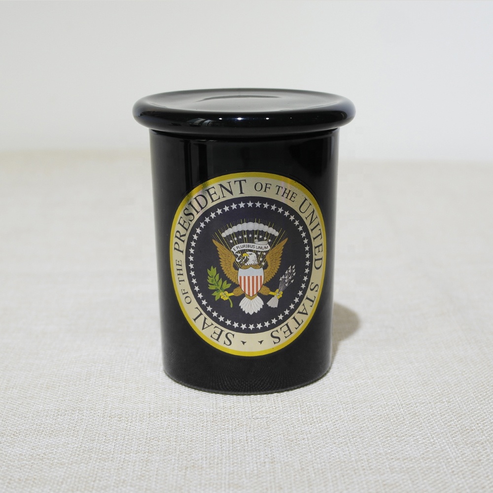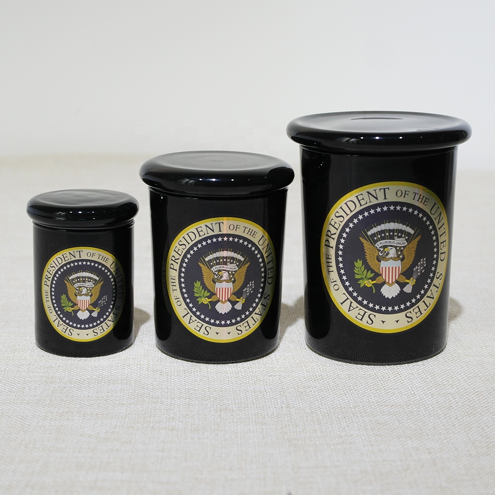 3oz 6oz 12oz Black Color Glass Stash Jar with Lid and Foil Printing