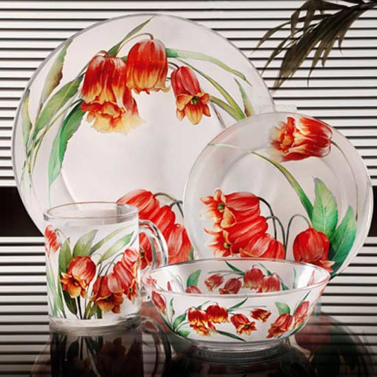 The glass tableware set flaunts floral patterns in an eye-catching way. The fine polishing ensures long-lasting beauty. This glass tableware set is a great gift for your friends.