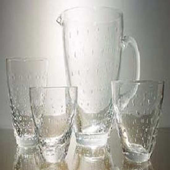 The sophisticated tableware set is exquisitely completed by a glass jar and 3 cups with a matching design. Dexterous handicraft is unveiled without reservation by the graceful curve flowing along each piece of tableware. The top-quality glass exudes a touch of elegance while promising a desired medium for both hot and iced beverages. Complete your tableware collection with this glass tableware set.