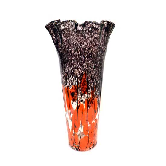 This flower vase boasts a glass design with an elegant appearance. It is beautifully accented with delicate prints in sharp colors to catch your attention. This attractive glass vase gives your home decoration an appealing look.
