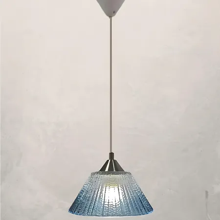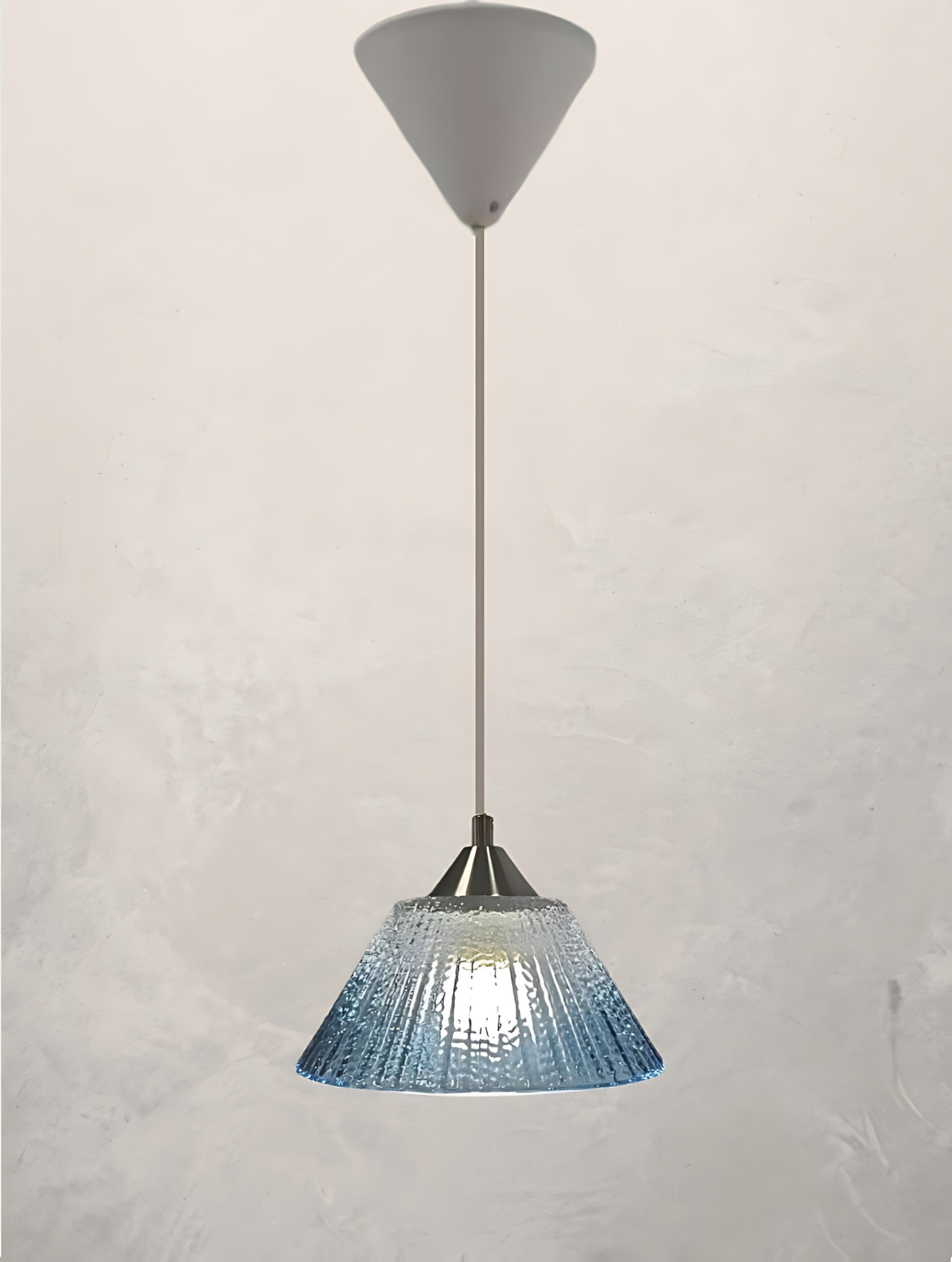 Soft Blue Glass Shade: Subtle vertical lines in the pale blue glass create visual texture and dimension.