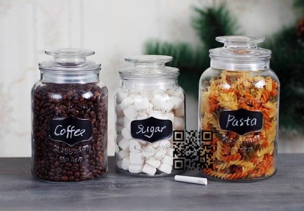 Glass storage jar with chalkboard sticker and chalk.,3pcs is one set.Volume:1500ml/1250ml/1000ml