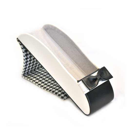 This displayed glasses case is well made of PU for adequate protection. The wedge-like design showcases a sophisticated accent. The ribbon adornment adds an elegant touch to the spectacle case.