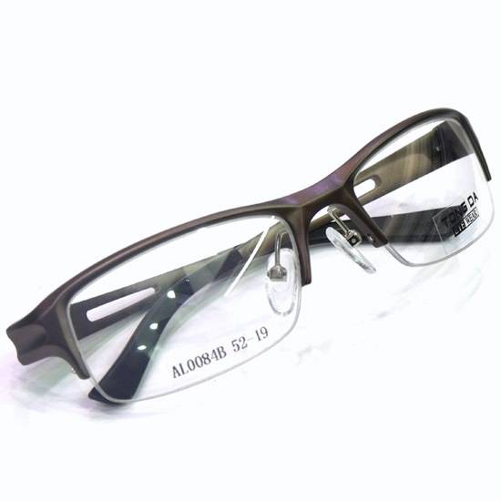 The glasses frame bestows a stylish half-rimmed design. The aluminum rims and temples offer enhanced durability. This glasses frame is essential for completing your eyeglasses designs.