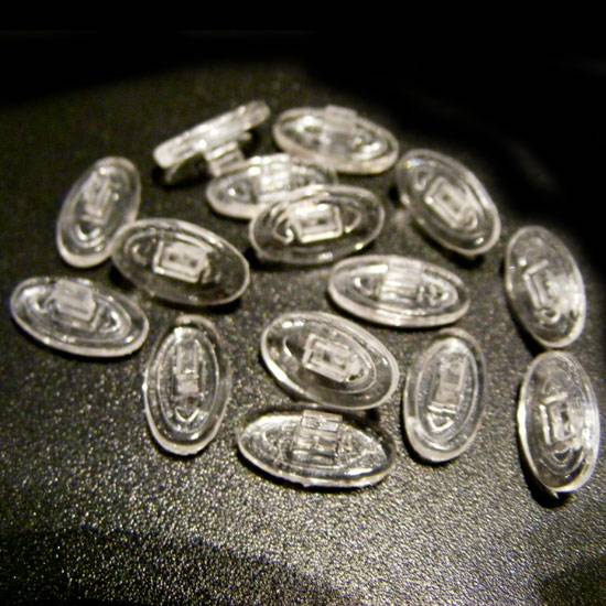 Spectacle nose pads made of silicon material. Clear in colour and oval in shape. Different sizes are available to suit different styles of spectacles.