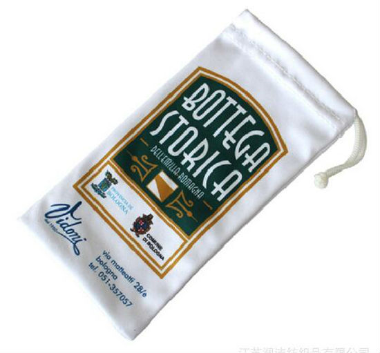 Glasses packaging bag displayed is made of microfiber with silk printing logo