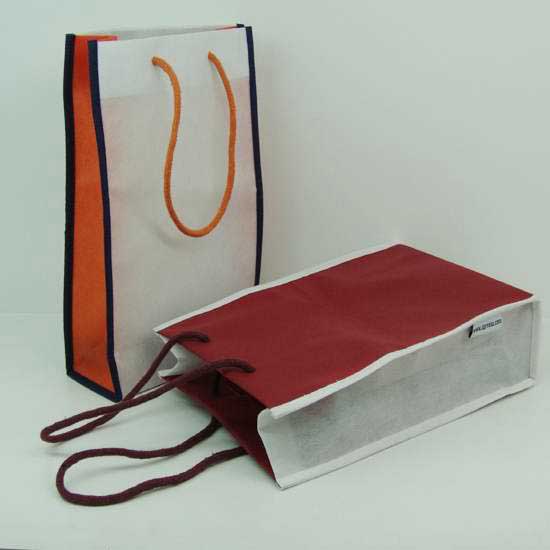 Displayed is a high-quality glasses pouch that is made of non-woven fabric material. This excellent pouch is designed with a pair of string handles for style and utility. This simply is a stylish packaging for glasses.