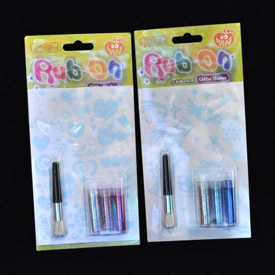 The set includes 3 bottles of glitter and a brush in a blister pack. The glitter is free from toxic that provides added safety for users. This glitter sticker set is ideal for making artwork.