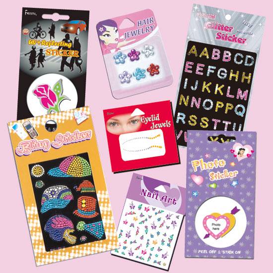 These are a series of glitter stickers. They are suitable for make up as well as decorating your pouches and telephones. The bling bling stickers can be placed on the eyelid, nails and hair for make up purpose.