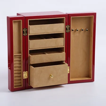 Crafted from premium high-density MDF with a mirror-like piano lacquer finish, this jewelry box features an intelligently organized interior, including a dedicated necklace hanging section—ensuring every piece of jewelry has its perfect place.
