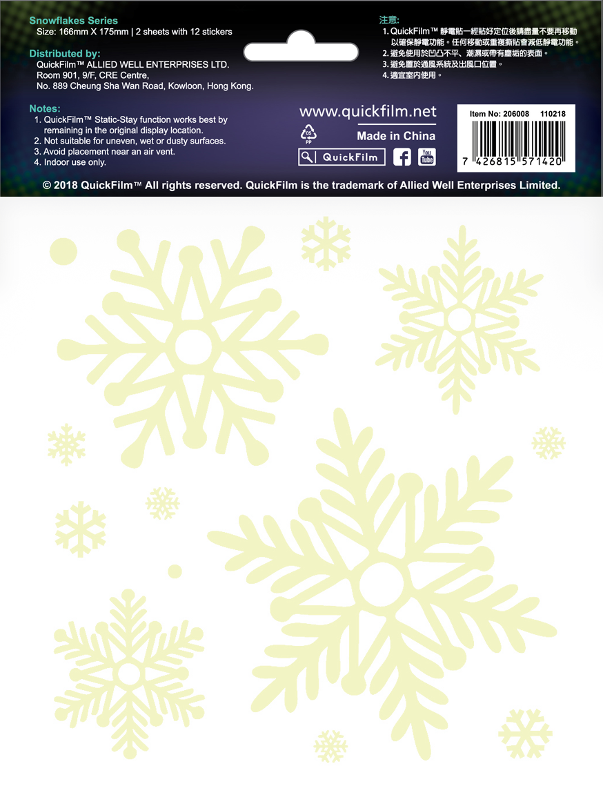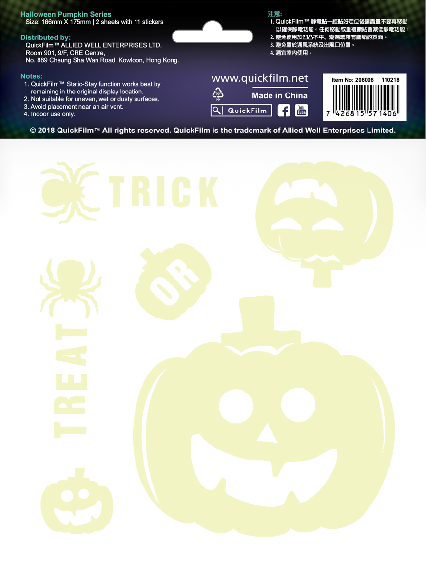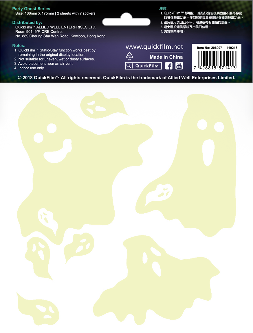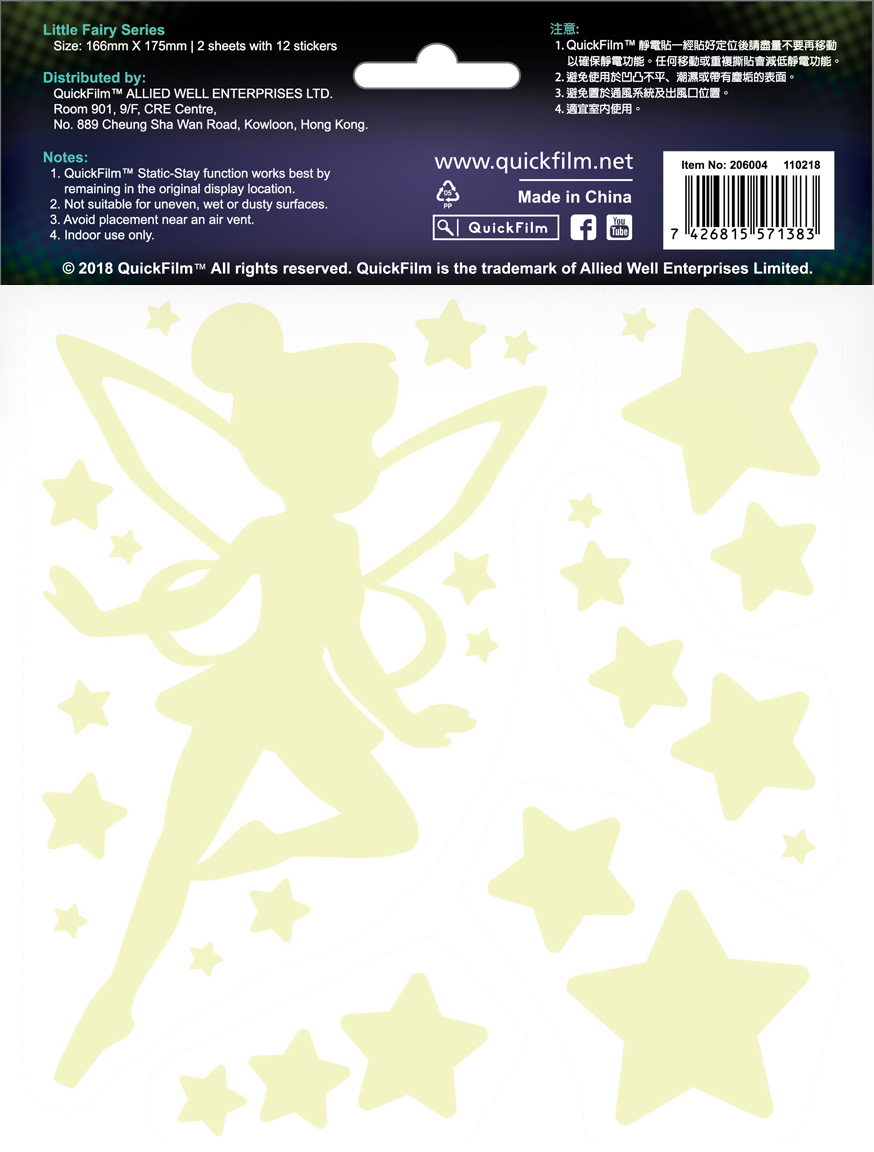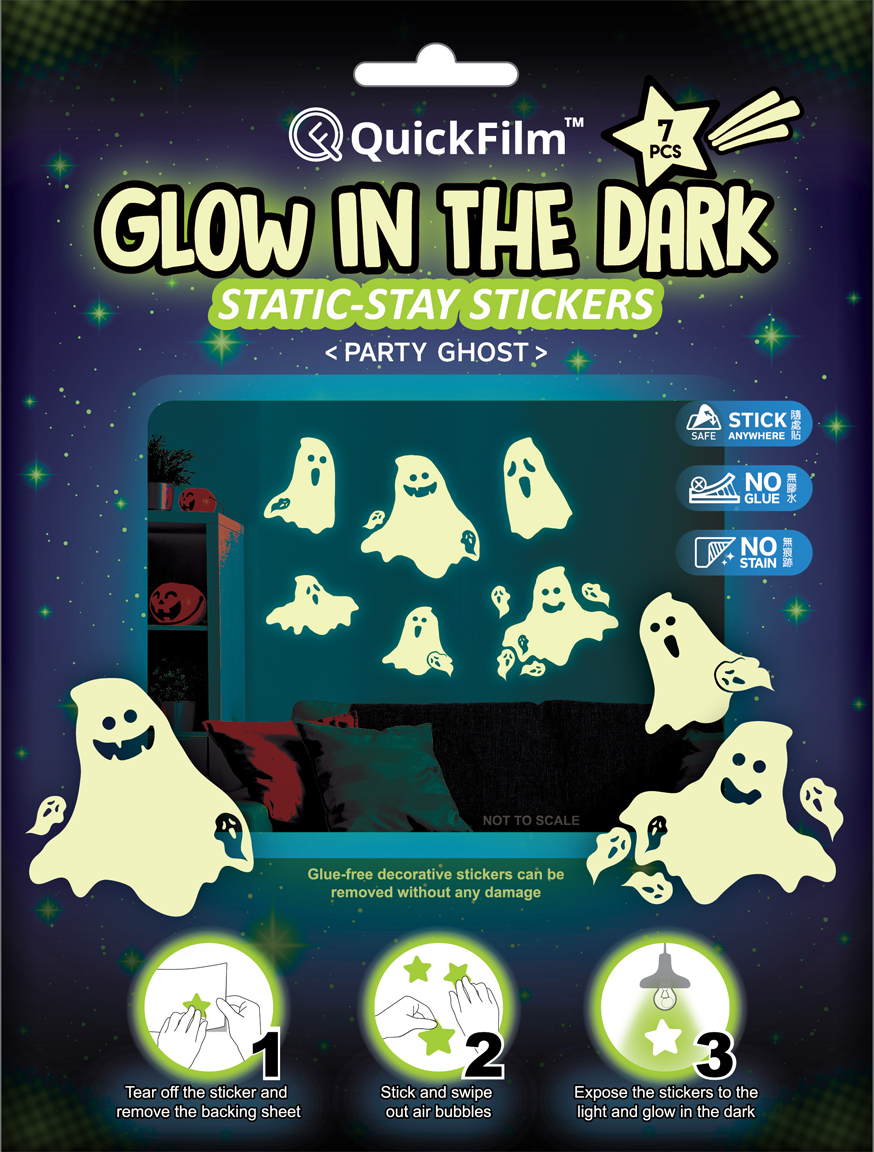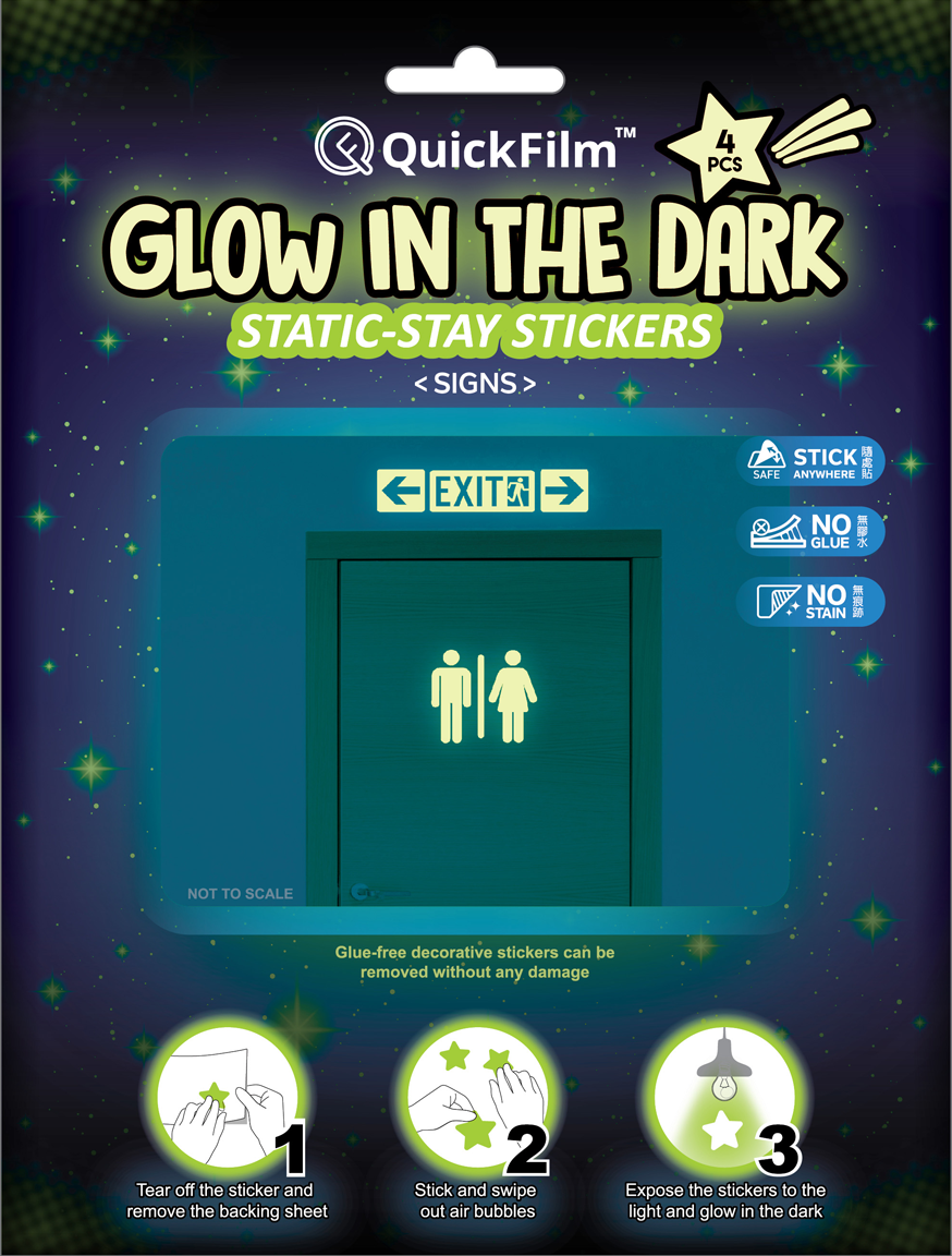 QuickFilm™ Glow-In-Dark Wall Decoration Stickers do not contain glue, can be moved easily, and leave no trace behind. It can be adhered to any smooth surface such as walls (including painted walls), ceilings, furniture, fridges, round surfaces, glass, etc. With one easy tear-and-paste motion, you can instantly renew the look of your interior, bringing constant freshness to your environment.