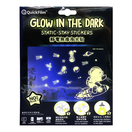 QuickFilm™ Glow-In-Dark Wall Decoration Stickers do not contain glue, can be moved easily, and leave no trace behind. It can be adhered to any smooth surface such as walls (including painted walls), ceilings, furniture, fridges, round surfaces, glass, etc. With one easy tear-and-paste motion, you can instantly renew the look of your interior, bringing constant freshness to your environment.