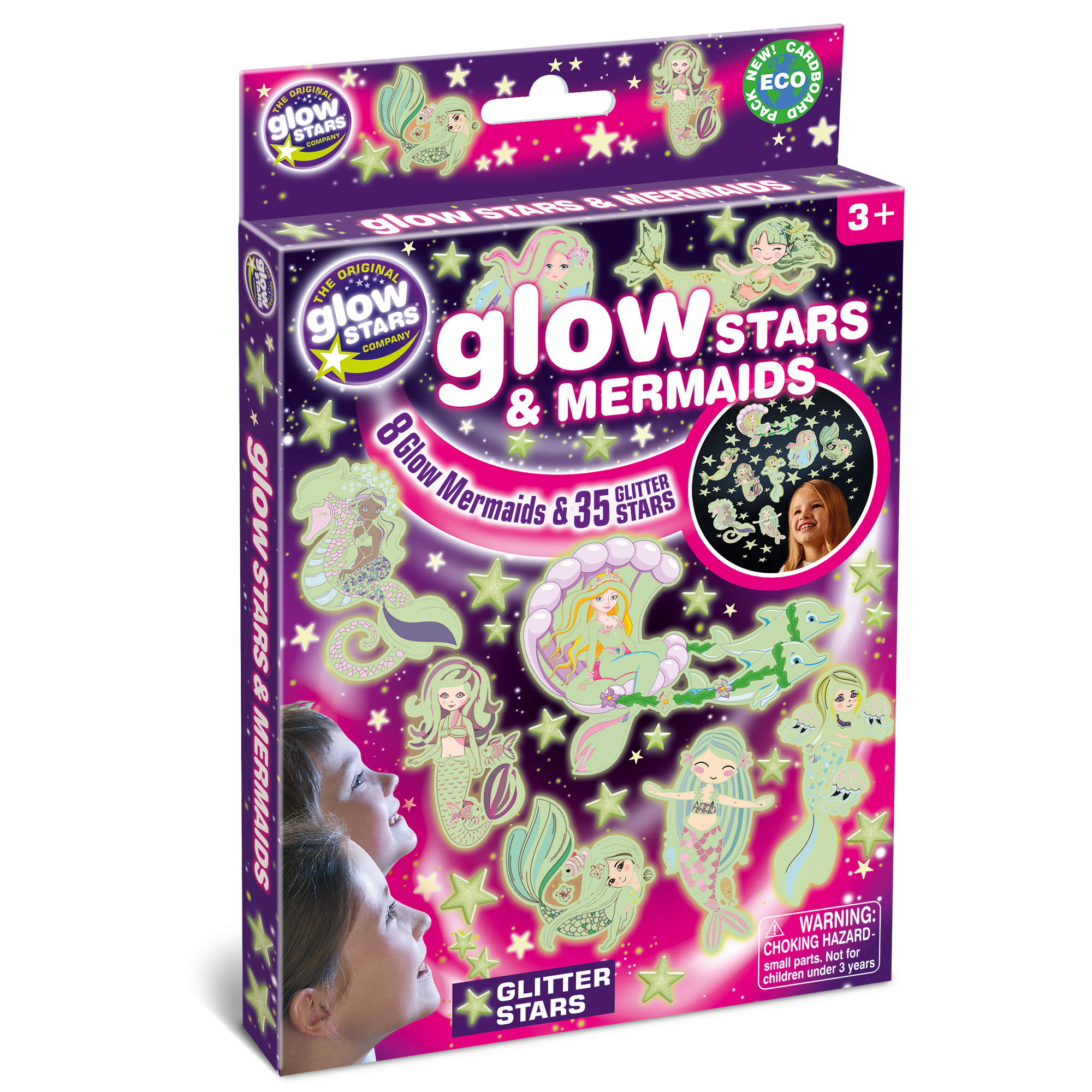 Enjoy an enchanted underwater adventure with these self-adhesive glow mermaids and glitter stars. Decorate your room and accessorise your stuff with magical glow-in-the-dark designs. Just expose the stickers to a light source for a few minutes, turn off the light and watch them glow. Endless fun!