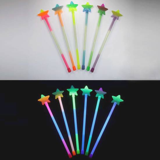 These fancy glitter star wands will Glow in the Dark. The Glow in the Dark glitter star wands come with a star at the top and will bring delight to all young children & teen. The Glow in the Dark glitter star wands produce various glow of different colours in the dark.