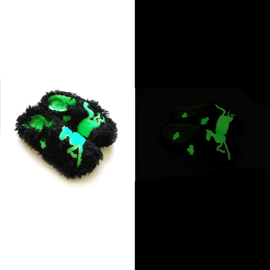 This is a pair of glow-in-the-dark slippers with a cute design. The shoes are made of quality materials for a comfortable touch. This pair of slippers is available in different colors for your selection.