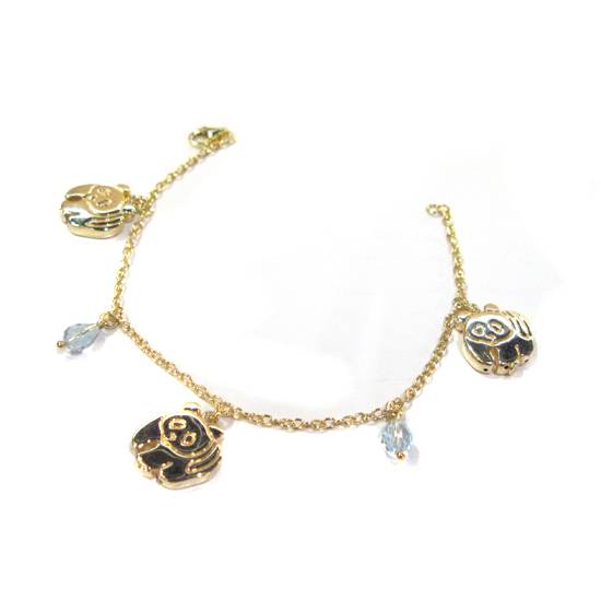The biggest selling point of this gold necklace is its panda drops. A total of three identical panda drops are equally spaced along the chain. Between them are two pieces of blue topaz. They are faceted, allowing them to reflect light to the greatest extent, and, hence, sparkle wonderfully.