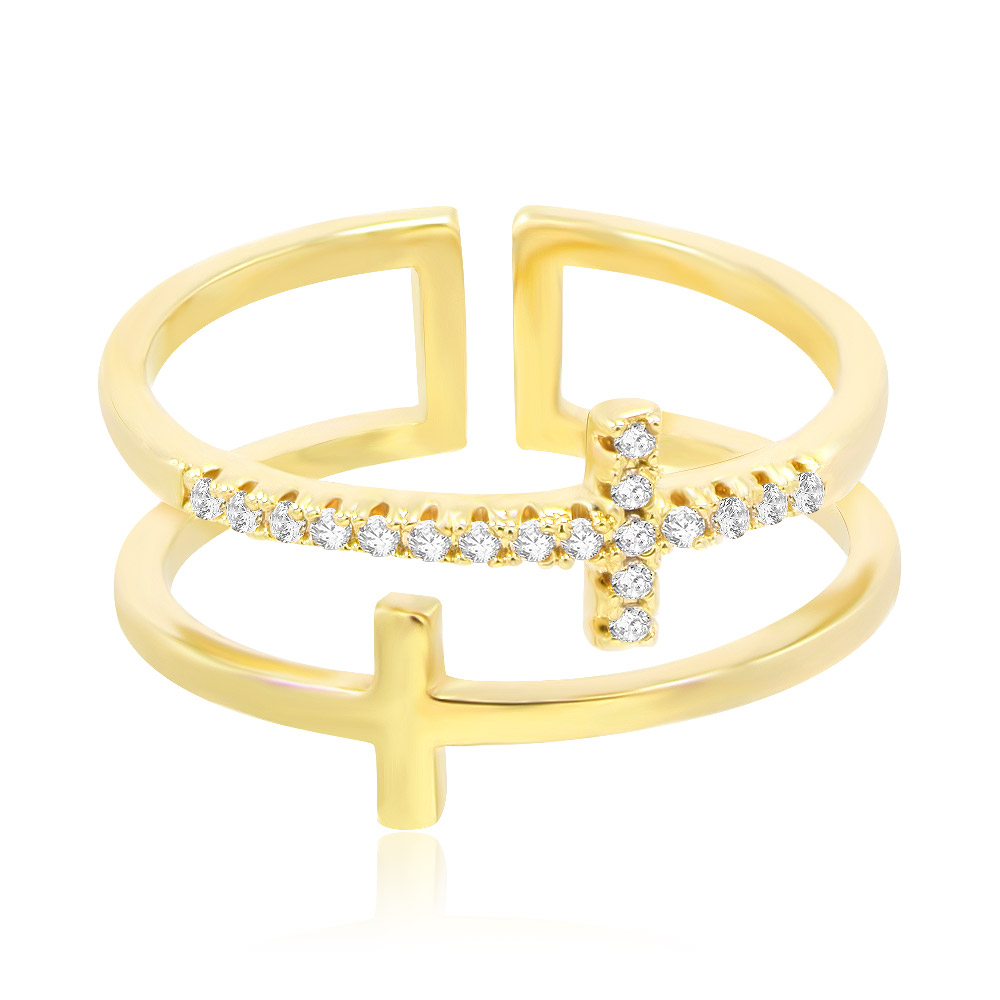 This adorable double cross gold ring is perfect to wear every day and add a precious touch to your daily outfits. Handmade from Gold plated 18K Brass with CZ stones. Perfect to wear alone or stack it with other earrings. Hypo-allergenic, lightweight, and nickel free.