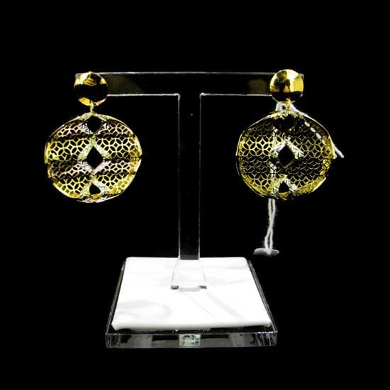 These classic dangling earrings are accented with unique cutout hive patterns. The 3D wave design makes them stand out but still wearable with any outfit. The two-toned earrings are finely made of yellow and white gold.