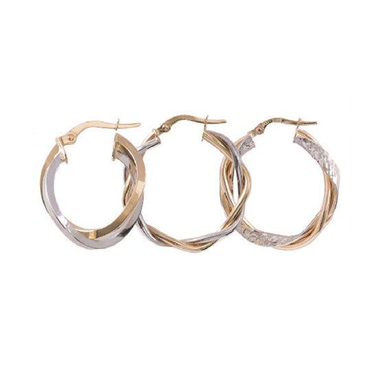 These gold earrings come with a 2-toned design. The gold bars with different finishes are intertwined together to create a multi-layered look. It is easy to wear with any outfit thanks to their delicate size and light weight.