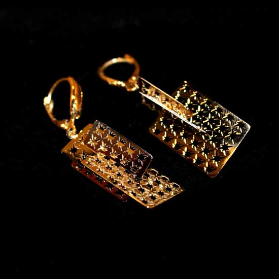Highlighted here is a pair of earrings with a stylish design. The white and yellow gold setting showcases an opulent touch. This pair of gold earrings never goes out of style.