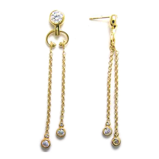 The earrings create an aura of fantasy with its round cubic zirconia in different size. The earrings are plated in gold finish that shows sparkling and luxuriant effect. This pair of earrings is surely a great choice for your jewellery collection.