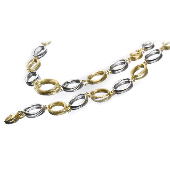 Showcased here is a hollow jewelry chain created with fine detail. The silver and golden irregular loops make a youthful and fashionable match. This well-designed jewelry chain sets itself apart from other designs.