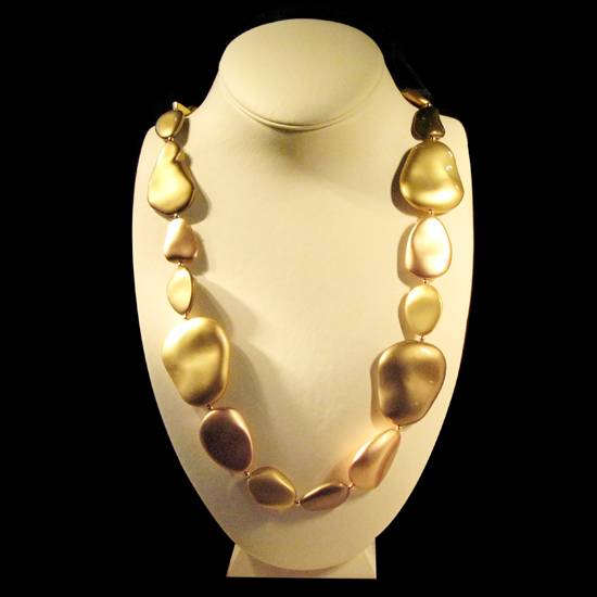 This necklace gives you a lot of room for imagination. It is because the pieces featured in this necklace can be interpreted in many ways. They may look like rocks usually associated with coasts, which offer you a sense of naturalness; or the shells of different sizes on a beach. No matter what you think about these pieces, the surest thing is the naturalness of this necklace.
