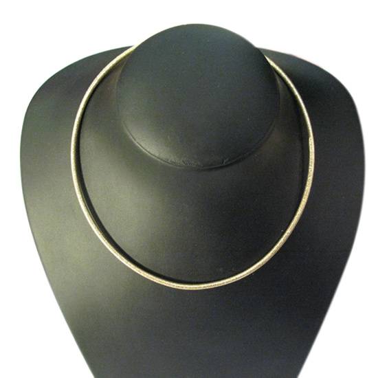 This necklace is made in 18k gold without any embellishments. It is simply designed in a tube-like shape which is very light. The wearer can match with different clothing when wearing this necklace.