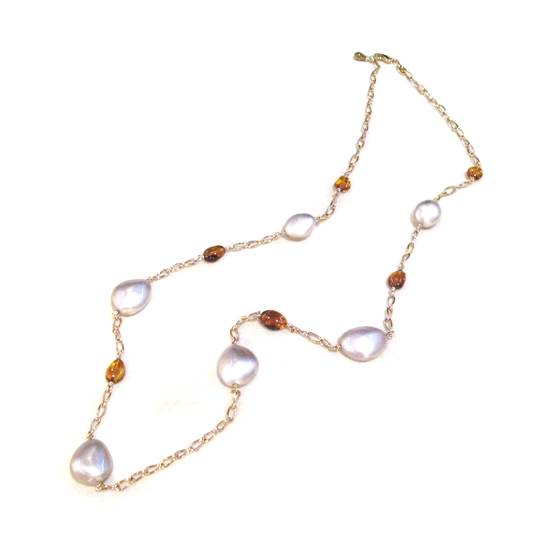 This necklace is made in 18K gold embellished by gemstones. The length of the necklace is 95cm and the weight is 48.1 grams. The chain is in cable link design with greater circles. The gemstones are in different colors for making the necklace to be out of ordinary.