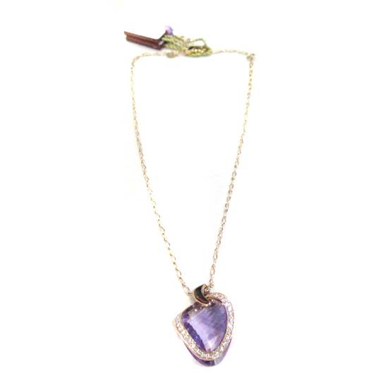 This necklace is made in gold with a pendant of amethyst and diamonds. The amethyst pendant is in faceted cut with high clarity. It is surrounded by diamonds of 1.05 carats to add more sparks. The chain is in cable link design.