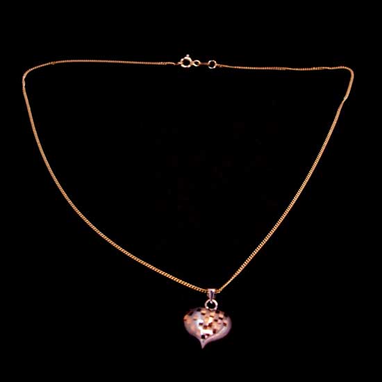 The gorgeous necklace features a heart-shaped pendant for a touch of romance. The gold casting ensures lasting beauty. This gold necklace is a great gift for your beloved one.