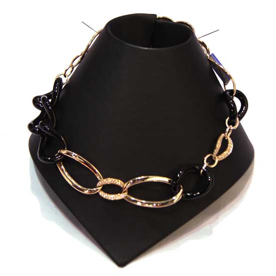 Featured here is an elegant necklace that is made of gold and onyx oval rings. This excellent necklace is also embellished with loose diamonds, further accentuating the elegance of this piece. Wear this with your evening attire for a unique touch of style.