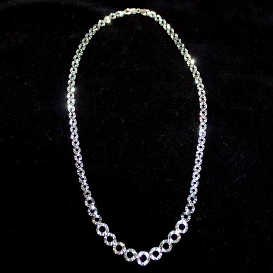 This shimmering gold necklace flaunts stylish elegance with its polished design. The necklace itself comes with small circular gold rings. This simply is the ideal necklace for sophisticated ladies.