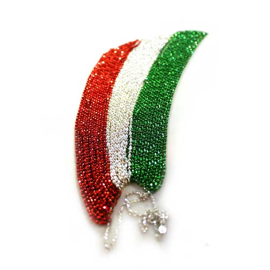 This stylish necklace showcases an Italian flag with the colored gold tassels. The necklace is treated with an Oxicolor process for durable and safe coloring. This necklace instantly adds style to your daily look.