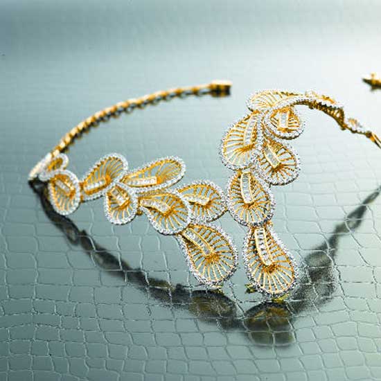 This is an elegant necklace that is exquisitely crafted to showcase a great sense of uniqueness. Crafted of 14K or18K gold, the gorgeous necklace features multiple pedal settings with a two-tone design for a striking effect. This gold necklace glimmers with a highly glossy finish.