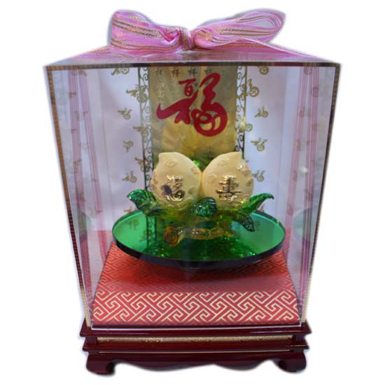 The gorgeous gold peaches are perfectly executed to achieve brilliant shine. The excellent shape and color completely reveal skilled craftsmanship. The precious gold peaches are suitable for gift purposes.