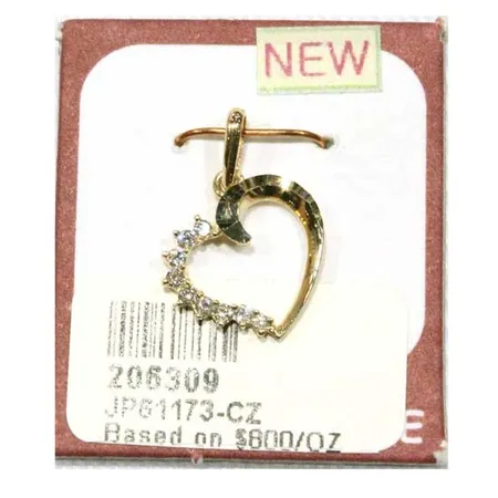 Showcased is a gold pendant in a heart shape to create a romantic look. The heart pendant is paved with splendid CZ stones for added fanciness. This gold pendant is a captivating piece to match with long dresses.